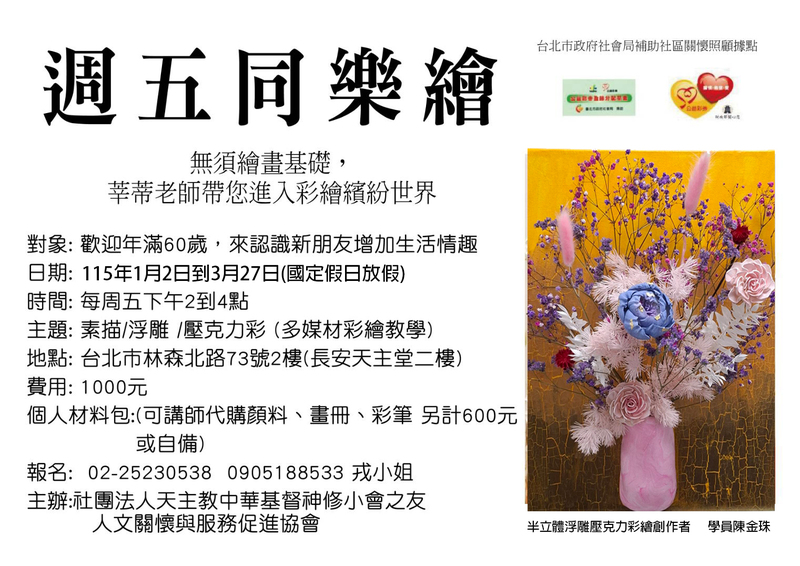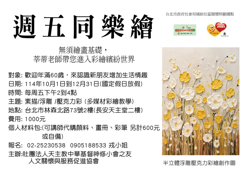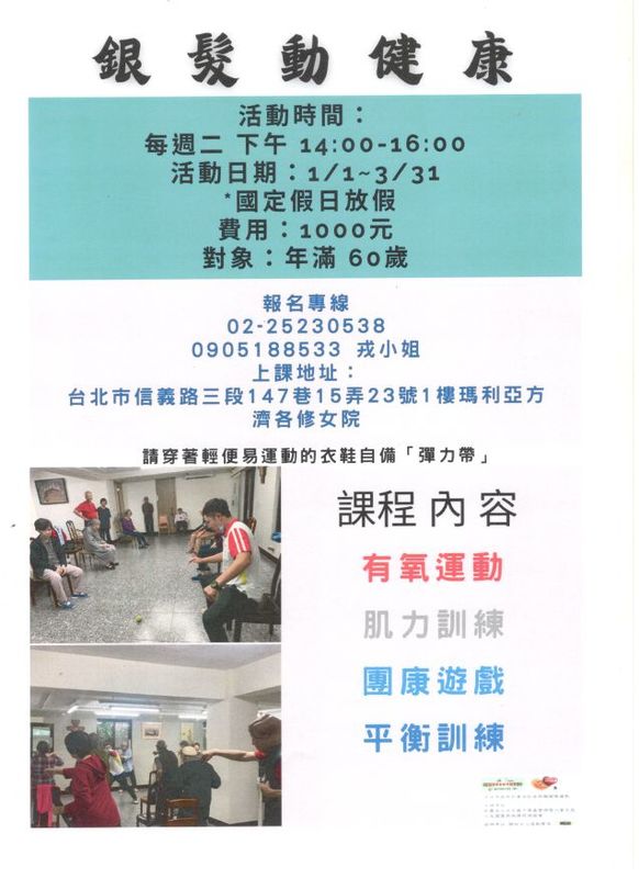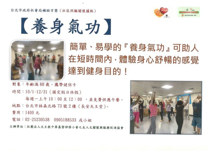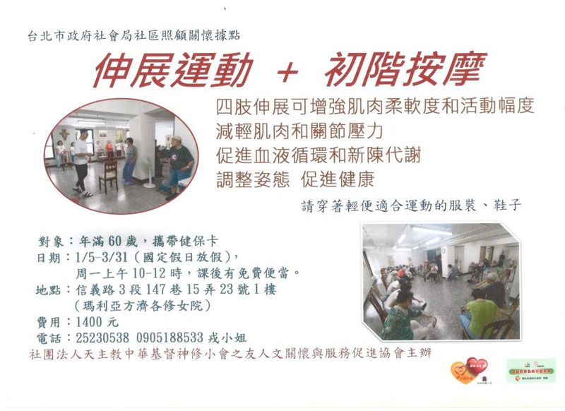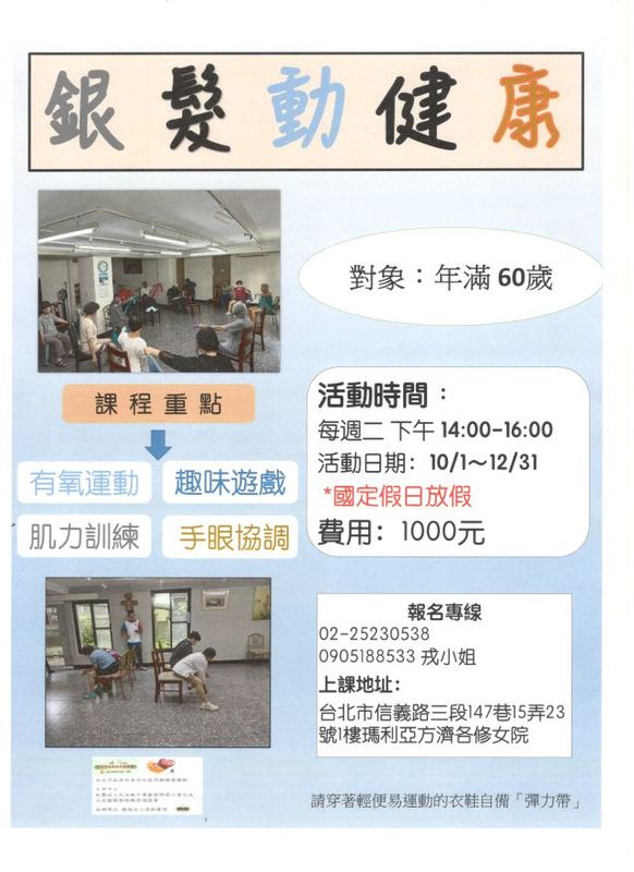 上課地點:台北市信義路3段147巷15弄23號瑪利亞方濟各修女院