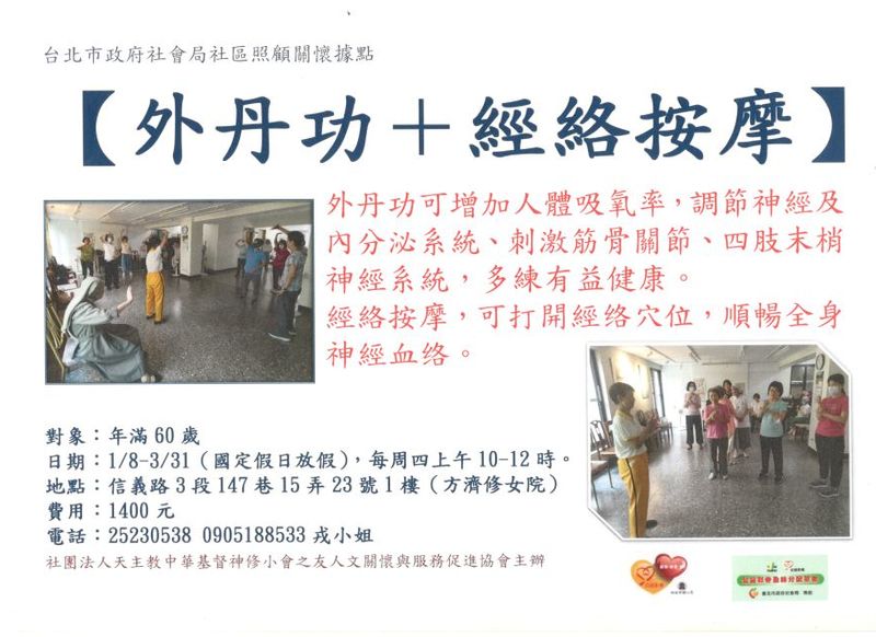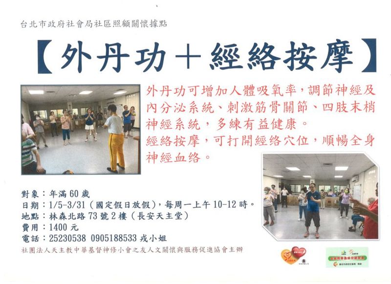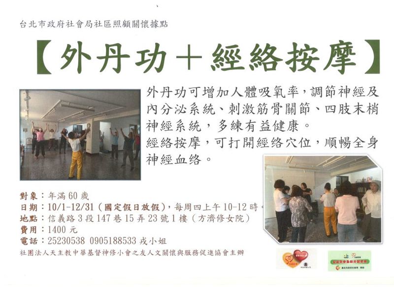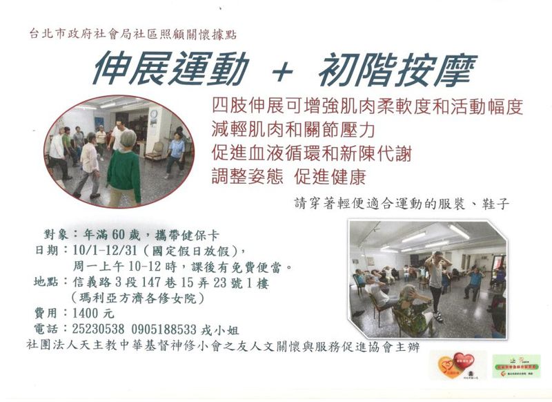 伸展運動+初階按摩.銀髮動健康.外丹功+經絡按摩
